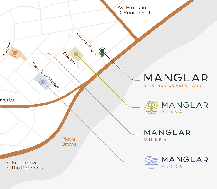 Es uno de los terrenos que termina de consolidar el eje Manglar en la zona, posicionando al desarrollo en una zona de gran crecimiento residencial, con excelente accesibilidad y proyección.